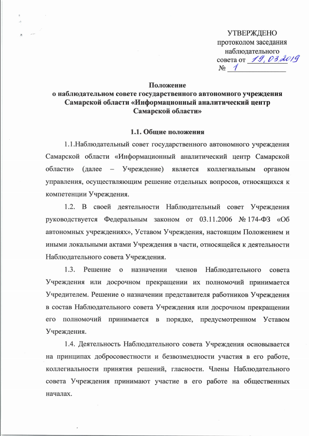 Положение о наблюдательном совете государственного автономного учреждения Самарской области «Информационный аналитический центр Самарской области»
